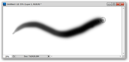 Một nét vẽ với đầu vẽ bắt đầu rất nhỏ và độ mờ ít và dần phát triển ra.